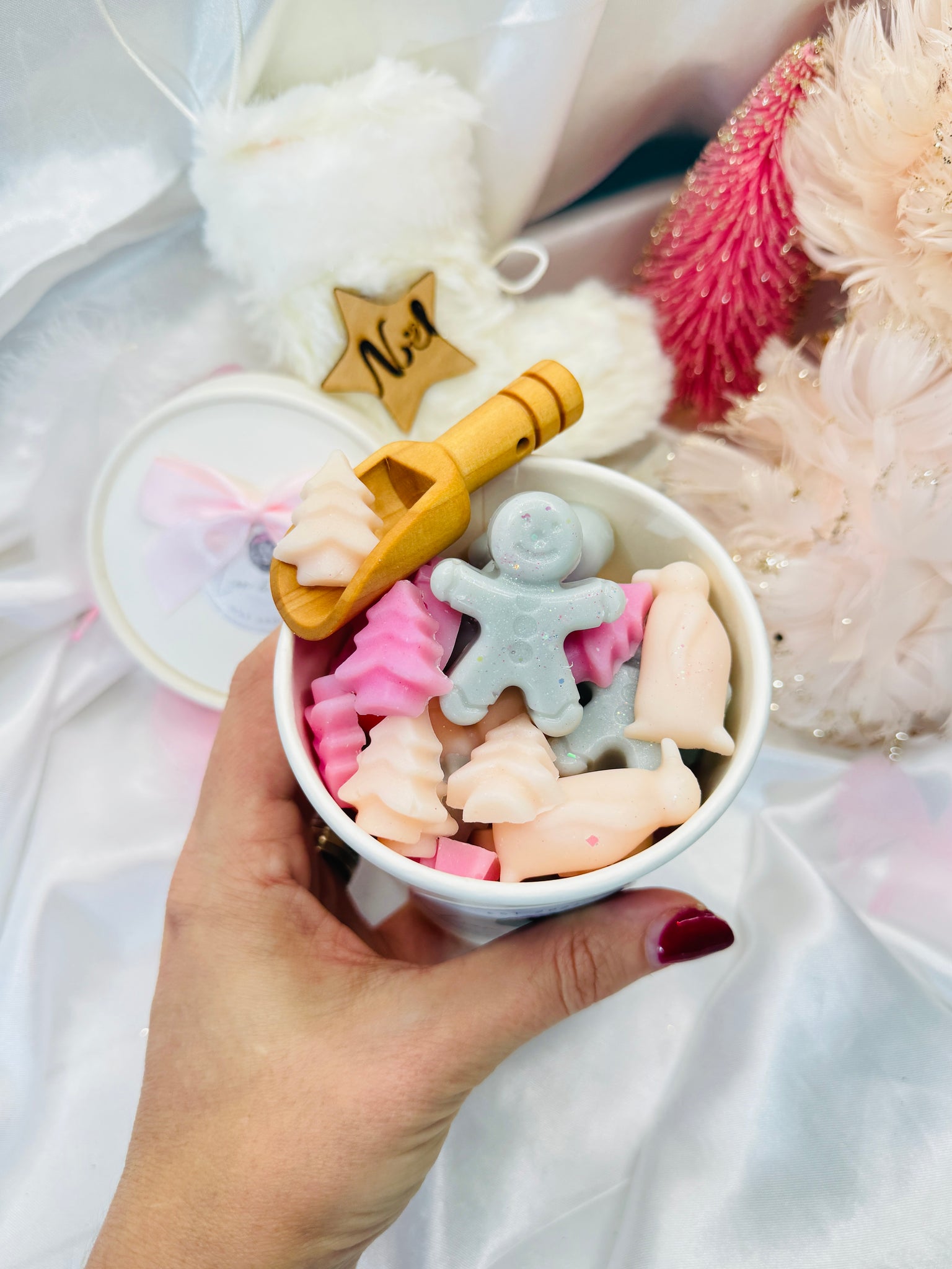 Our Signature Lion & Rose pretty scoopie pots contain 120g of wax in a variety of rose & heart shapes & our signature Lion melt! Perfect for scooping into your burner. Spoon included.