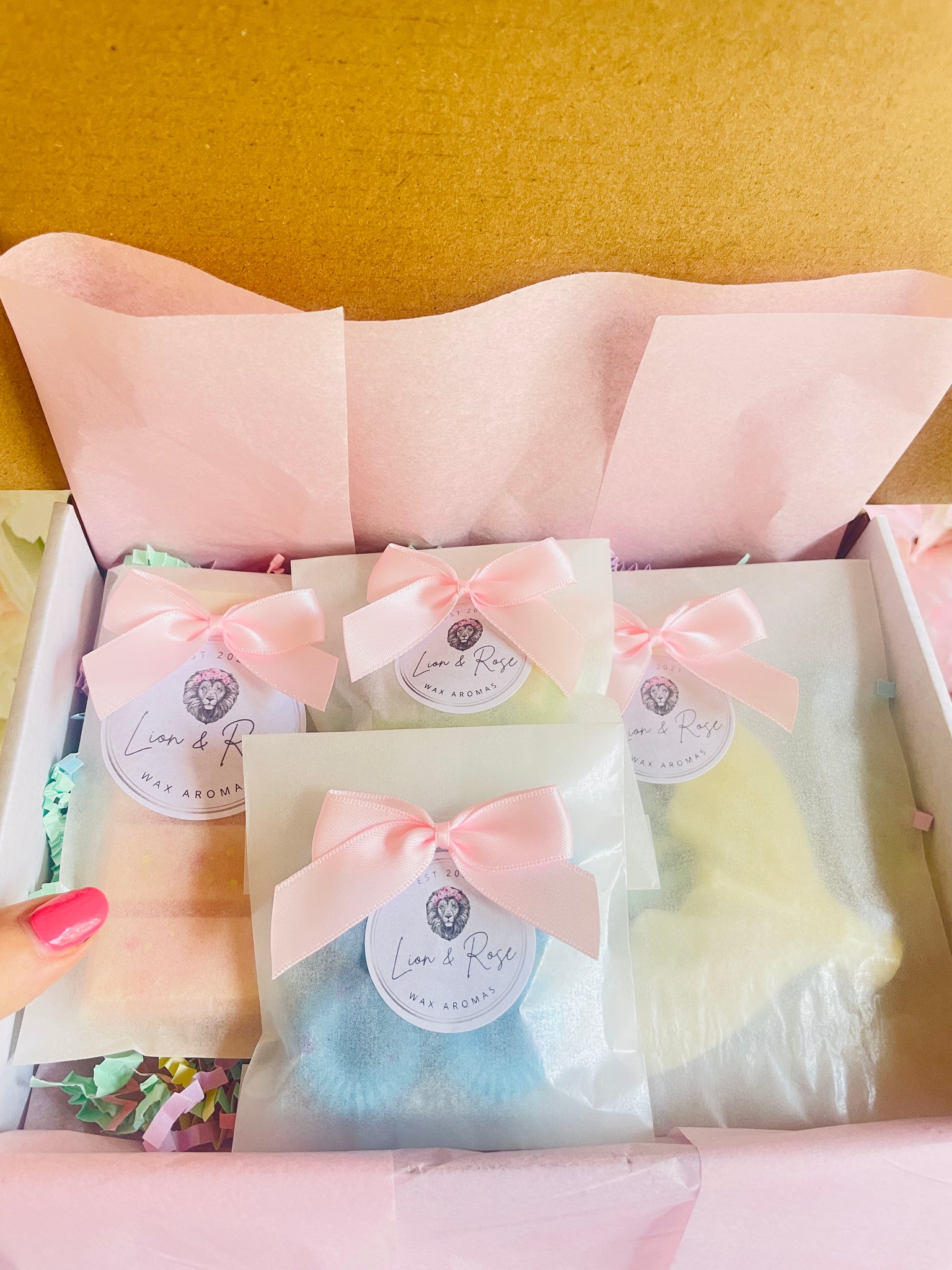 Our Mystery Box is perfect if you have trouble deciding what scents to choose, or just fancy having a lovely surprise. Each box contains a variety of melts in different shapes & scents.