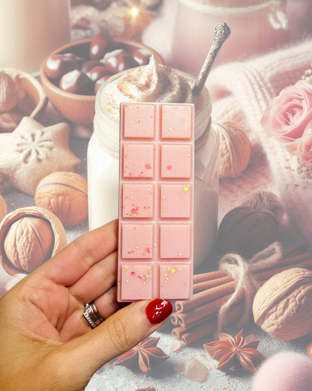 A sweet and creamy accord where warm chestnuts and hazelnuts are blended with soft spicy notes of white ginger, cinnamon, clove and a hint of coffee on a whipped vanilla base.
