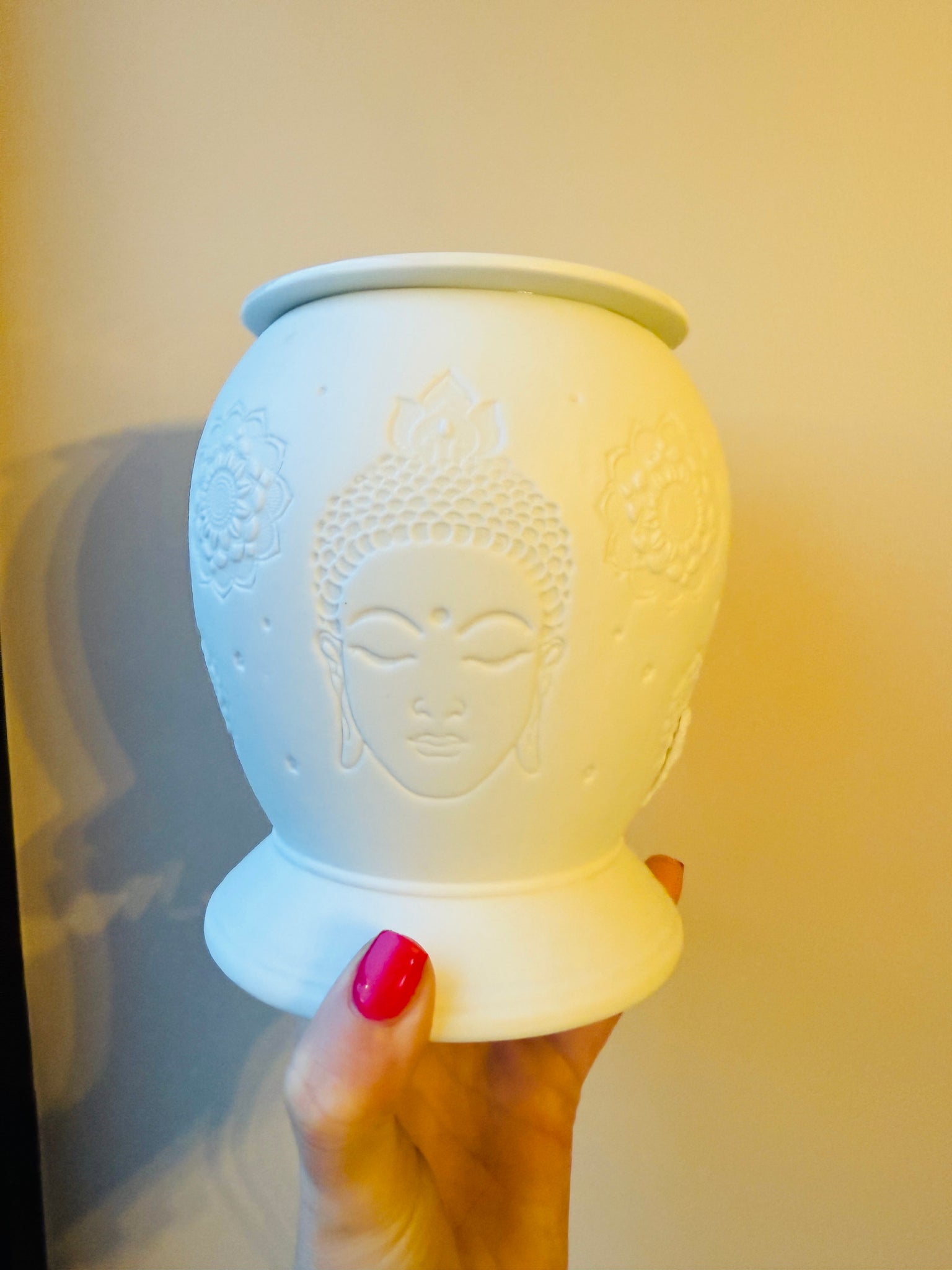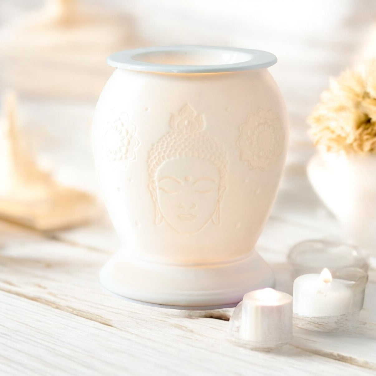 Elegant yet understated, this white ceramic electric burner would compliment a variety of homes or could even be used in a relaxation or wellness centre thanks to its Buddha design which is softly illuminated when the lamp is turned on.