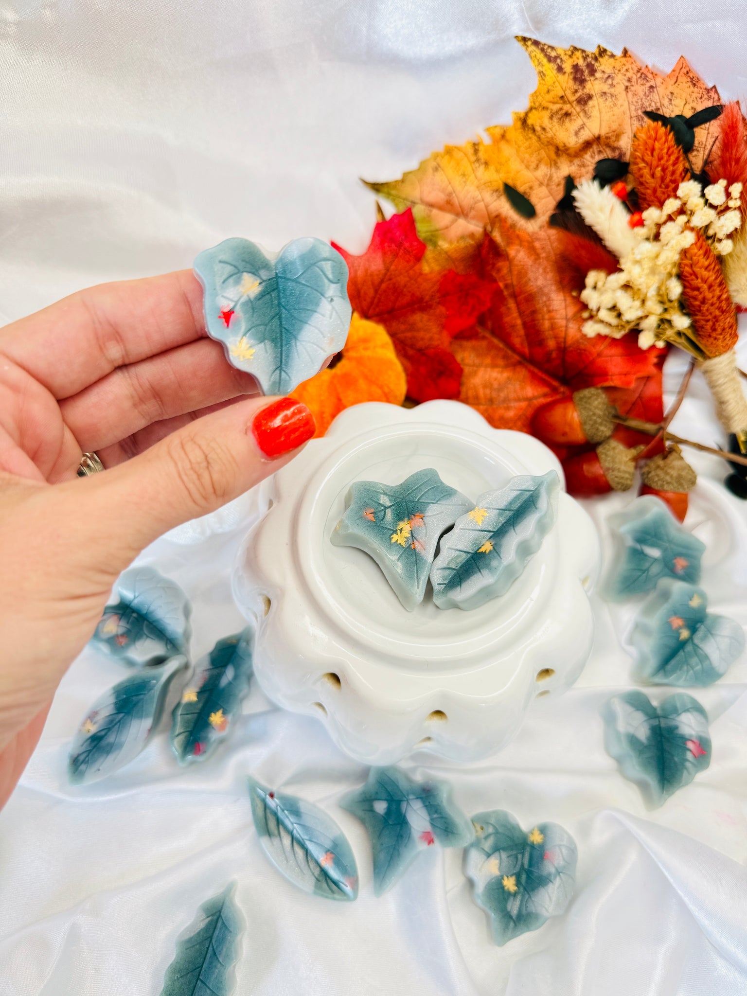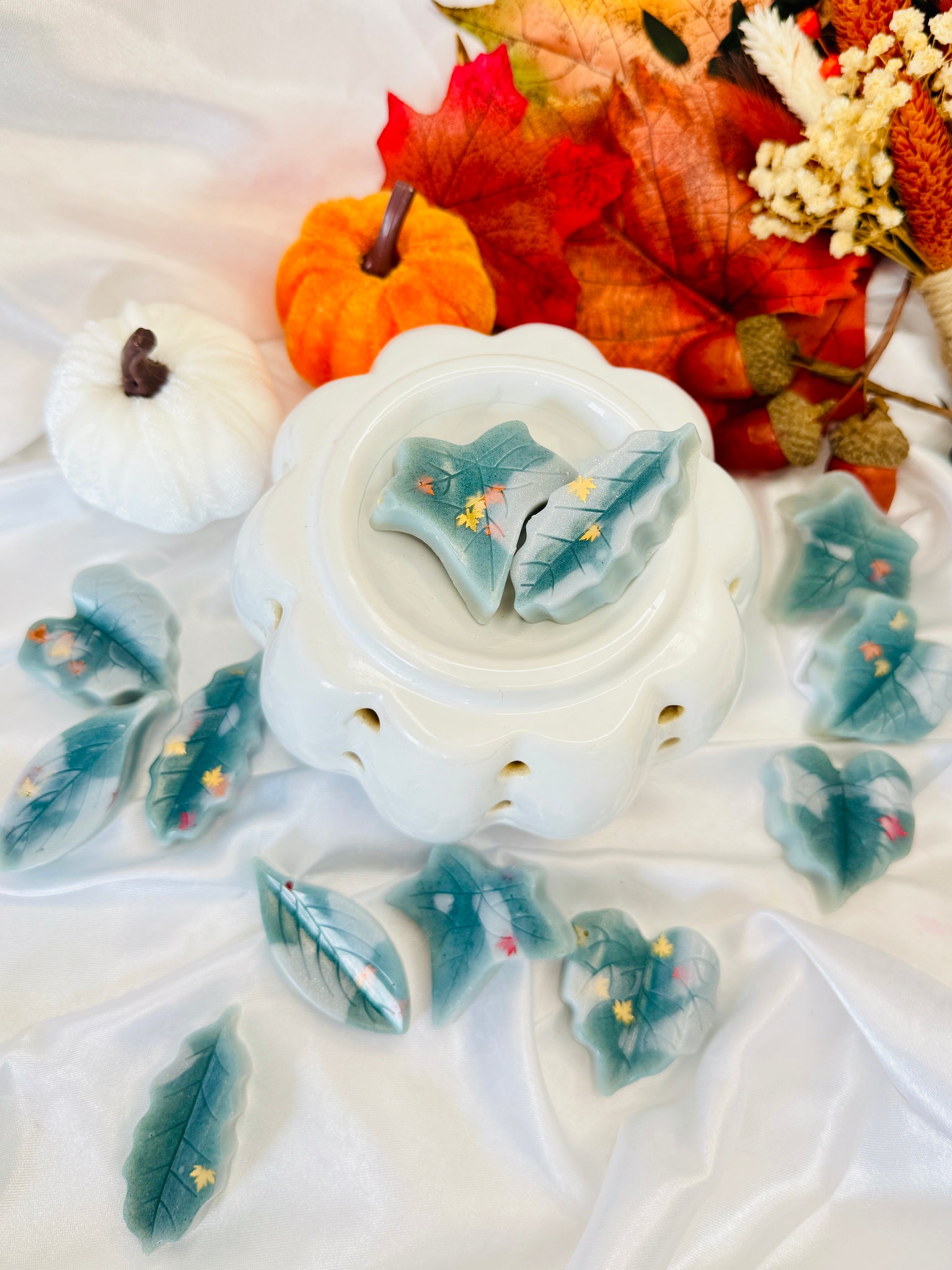 4 x leaves in a bag weighing approx 35g together. Just pop 1 or 2 in your burner & enjoy!